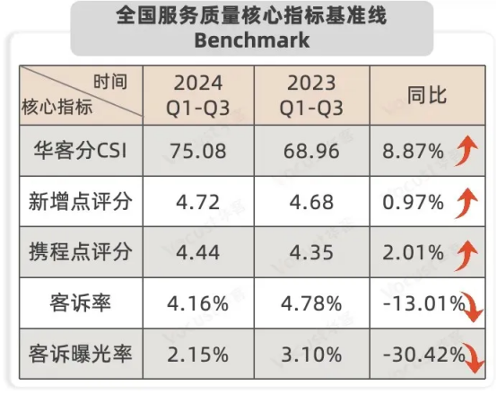 本次数据调研主要针对中国饭店协会会员及上海华客信息科技有限公司客户开放,得分以2024年1-9月的经营数据(出租率、NOP)、口碑数据(华客分CSI、新增点评分、携程点评分)为基数,综合加权总分计算得出。