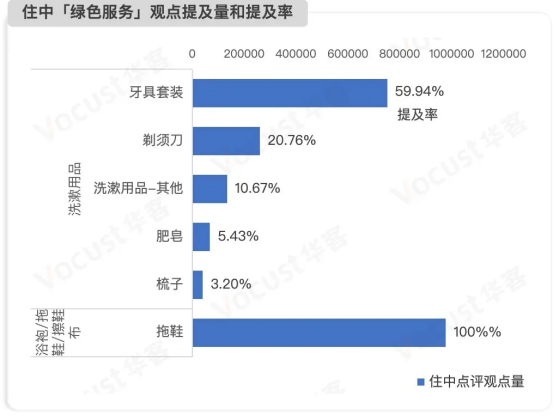 除此之外,还新增了绿色服务观点的洞察。华客在2024年Q1-Q3的9000多万条住中声量观点和1.3亿多条点评观点中,重点分析了此项措施,在消费者层面的感知质量。