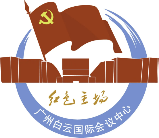 标识中间的党旗,寓意听从党的号召,拥护党的领导,以党建引领企业高质量发展;净水色的圆弧寓意珠水环绕,代表着团结、圆满、和谐;党旗之下是广州白云国际会议中心简图,兼具雄伟山形,具有鲜明地标特色,寓意白云国际与白云山山城一体;金黄色的“红色主场”与党徽上下呼应,大气磅礴;圆弧上标注“广州白云国际会议中心”增强了党建标志易于识别的特性。