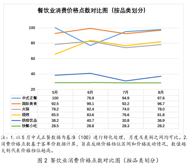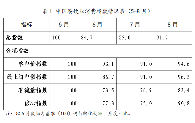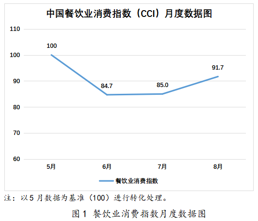 一、指数总体结果:5-7月餐饮业指数下滑,8月回暖明显