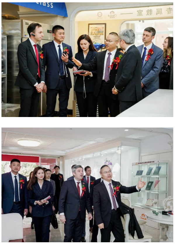 活动中,出席活动的各位领导与嘉宾实地参观了欧米奇西点西餐学校。参观过程中,嘉宾们先后走进学校的西点烘焙、法式甜品、咖啡饮品等专业教学实训教室,详细了解学校的教学设施配备、课程设置及学子日常实训情况。欧米奇现代化的教学环境、标准化的实操流程以及学员现场展示的精湛技艺,给嘉宾们留下了深刻印象。通过走访,不仅让法方嘉宾直观感受到欧米奇在中国西点教育领域的深厚积淀,也为战略合作奠定了坚实基础。