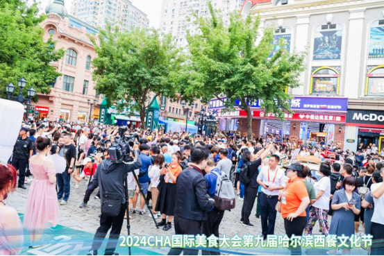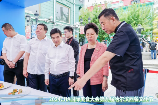 7月27日,由中国饭店协会与哈尔滨市商务局共同主办的第九届哈尔滨西餐文化节在哈尔滨中央大街盛大开幕。开幕式现场,中国饭店协会会长陈新华、资深会长韩明,黑龙江省商务厅副厅长张国利,哈尔滨市市委常委、人民政府副市长姜俊,俄罗斯联邦符拉迪沃斯托克国立大学学院院长库兹涅佐夫 德米特里,哈尔滨市商务局党组书记、局长甄长瑜,中国饭店协会副会长张景富、副会长兼秘书长宋小溪,哈尔滨马迭尔集团股份有限公司党委书记、董事长赵经涛,哈尔滨市饭店烹饪协会会长葛新,中饭协西餐休闲餐委主席张克山,中饭协烧烤委员会主席、哈尔滨市烧烤协会会长董绘,以及俄罗斯、马来西亚、韩国的嘉宾、厨艺大师,还有来自全国20多个省市区的西餐、日料、东南亚餐饮等企业与供应链企业代表,共计1000余人参加本次盛会。