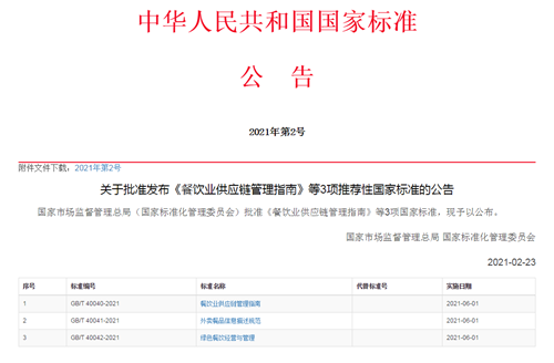 据中国饭店协会融媒体平台了解,此次发布的三项标准中国饭店协会均参与制定。其中《绿色餐饮经营与管理》(GB/T 40042-2021)国家标准由中国饭店协会牵头起草,《餐饮业供应链管理指南》(GB/T 40040-2021)与《外卖餐品信息描述规范》(GB/T 40041-2021)由协会参与起草。未来协会将继续加强标准工作,引领行业规范发展。