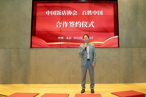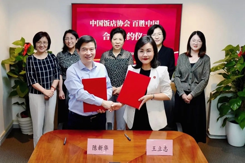 代表双方签署协议 中国饭店协会资深会长韩明等领导嘉宾见证签约仪式