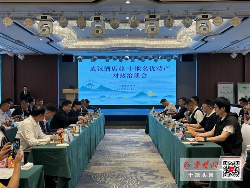 秦楚网-十堰头条讯 记者 代琳源 通讯员 刘宏杰 报道:为推动十堰农特产品融入武汉大市场,9月25日,武汉酒店业十堰名优特产对接洽谈会在十堰九头鸟宴庆楼酒店成功举行。武汉艳阳天酒店集团、粗茶淡饭、老汉口鲜渔府、鑫小城、农家小院、仓桥家等15家武汉知名酒店餐饮企业负责人,十堰36家农特产供应企业及行业协会、媒体代表等百余人共聚一堂,共谋产销对接新路径。