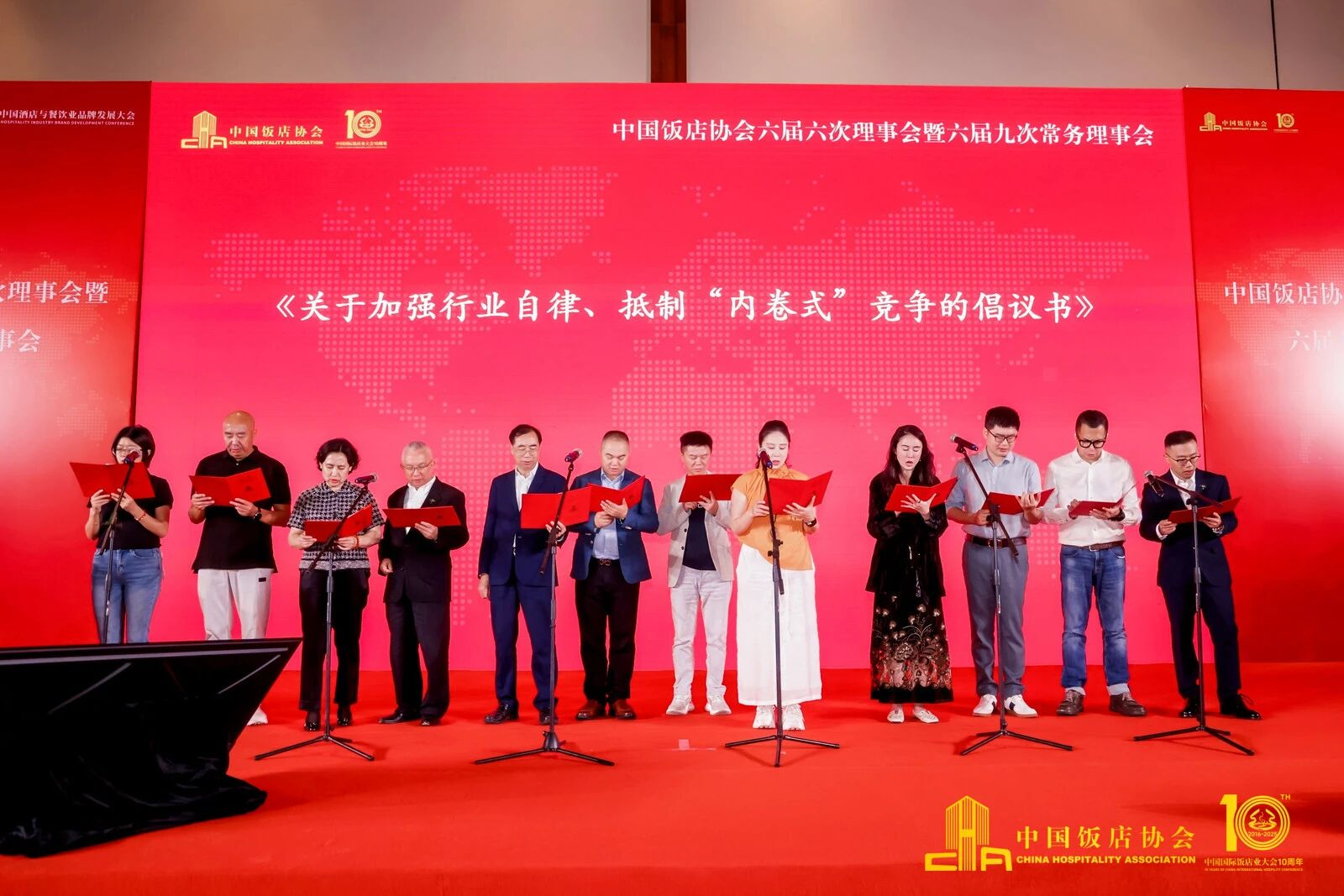 按照会议议程,到会全体理事代表对会议决定事项进行了审议,包括中国饭店协会换届工作领导小组的报告、章程修改草案的报告等。