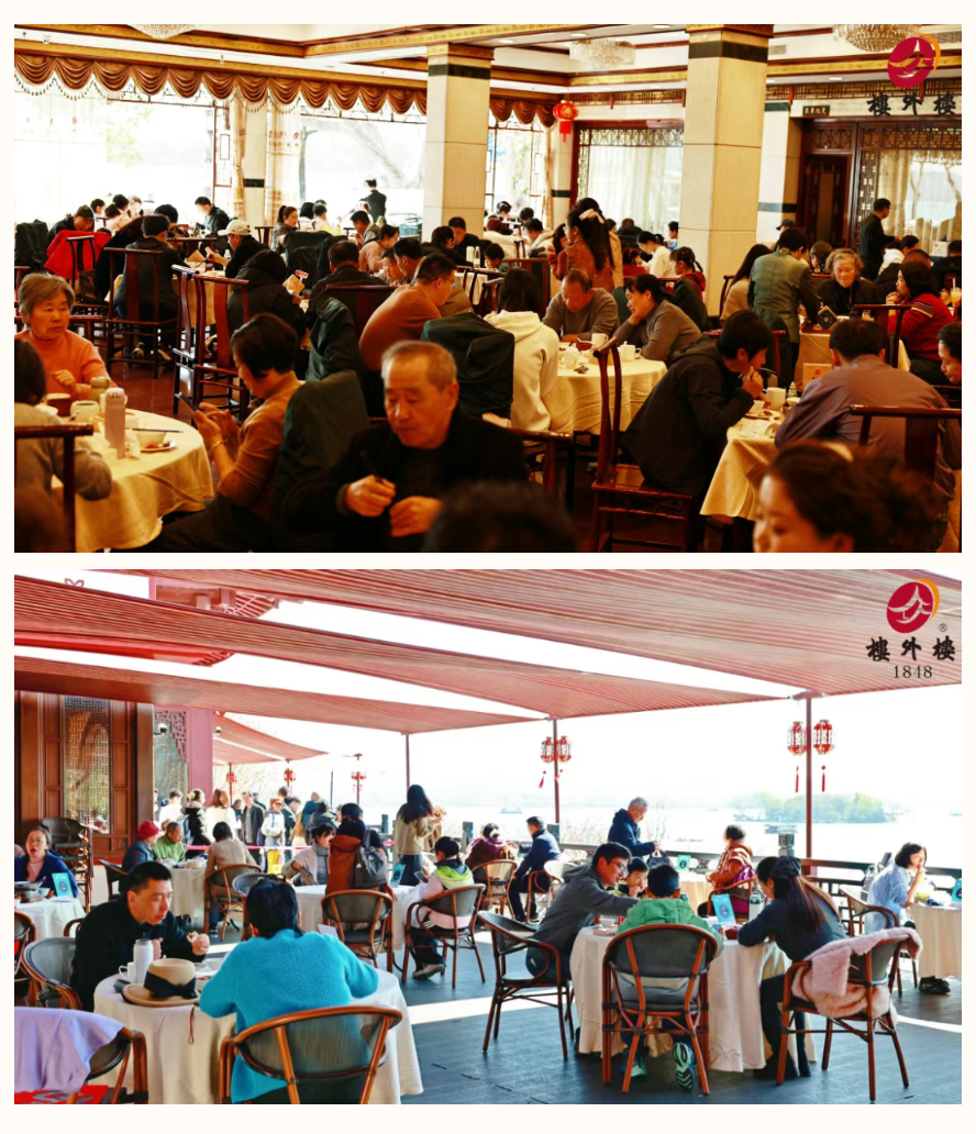 作为杭州西湖美食金名片,楼外楼始终坚守“以菜名楼、以文兴楼”初心,深耕菜品品质、贴心服务与文化底蕴三重核心价值。假日期间,楼外楼客流如潮、座无虚席,堂食翻台不断、年味礼盒热销,全线业态飘红,成为杭州春节消费、西湖旅游打卡的顶流地标。