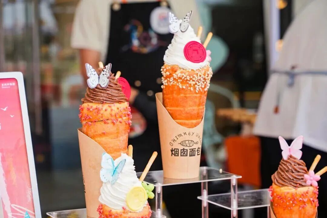 亮马河饭店聚焦年轻消费群体,推出烟囱面包冰淇淋。现烤烟囱面包外脆内软、层层酥香,搭配冰爽冰淇淋,冰火交织、口感丰富,独特口感深受年轻游客喜爱。